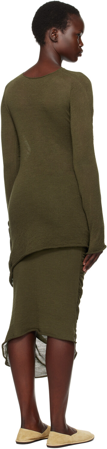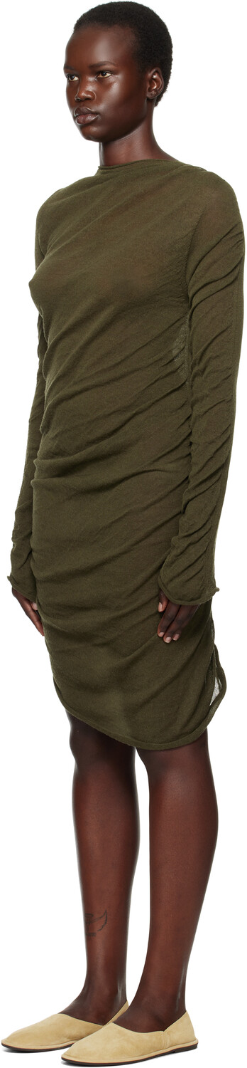 Зеленое неоднозначное шерстяное платье миди ISSEY MIYAKE
