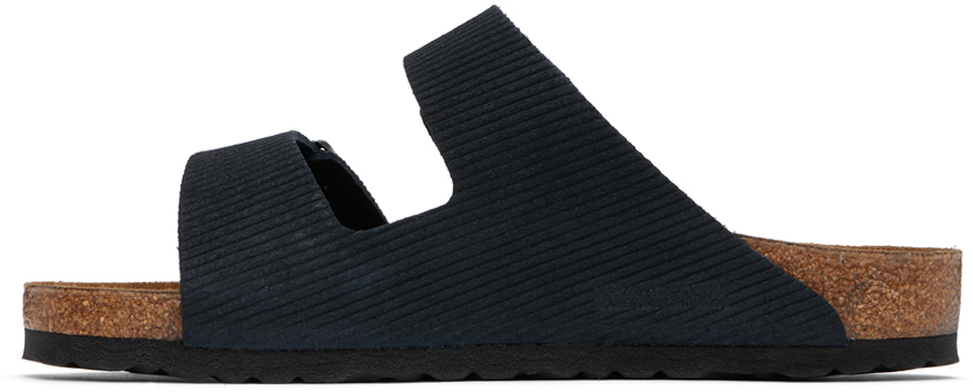 Сандалии Navy Regular Arizona. Замшевые сандалии с тиснением под вельвет темно-синего цвета.· Открытый носок.· Регулируемые ремешки с пряжкой на мыске.· Тисненый логотип на внутренней стороне.· Штамп с логотипом на формованной замшевой стельке.· Пробковая межподошва.· Протекторная подошва из резины EVA.· Гравировка логотипа с антикварной фурнитурой золотистого оттенка. Цвет поставщика: темно-синий вельвет. Верх: кожа. Подошва: пробка, резина. Сделано в Германии.