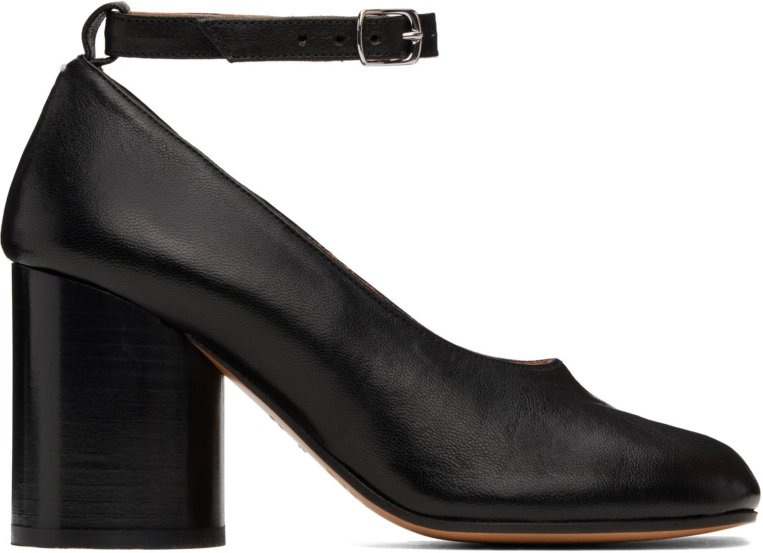 Черные каблуки Tabi. Каблуки из зернистой кожи наппа черного цвета.· Квадратный раздвоенный носок.· Ремешок на щиколотке с пряжкой.· Фирменная белая строчка на пятке.· Мягкая кожаная стелька.· Подкладка из полированной телячьей кожи.· Наборный каблук из телячьей кожи с резиновым напылением.· Подошва из полированной кожи.· Каблук: H3". Цвет поставщика: черный. Верх: кожа. Подошва: телячья кожа, резина. Сделано в Италии.