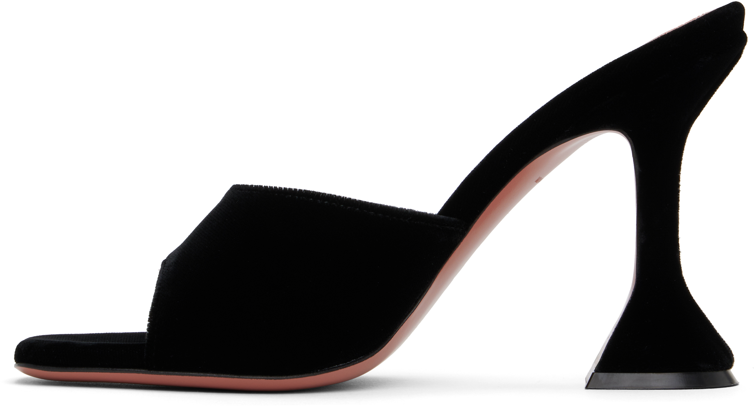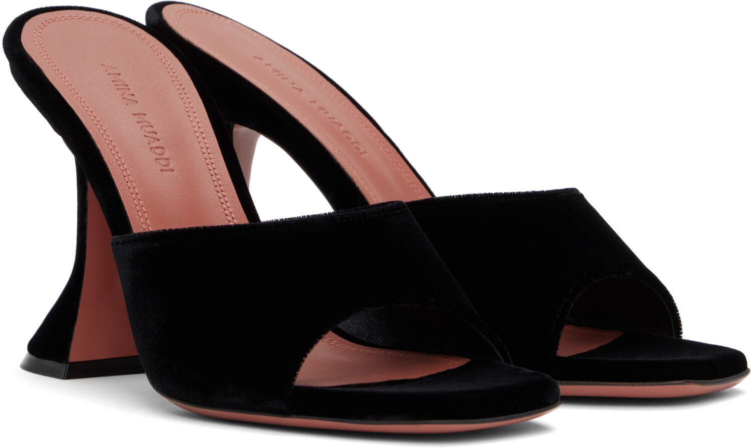 Черные босоножки на каблуке Lupita Slipper. Босоножки на каблуке из бархата черного цвета.· Открытый квадратный носок.· Мягкая стелька из козьей кожи с тиснением логотипа.· Закрытый каблук-катушка.· Кожаная подошва с резиновым напылением.· Каблук: H3.75". Цвет поставщика: черный. Верх: текстиль. Подошва: кожа, резина. Сделано в Италии.