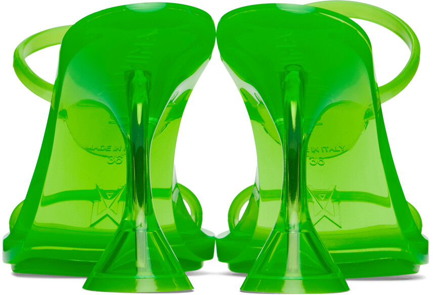 Зеленые босоножки Brito Slipper Heeled Sandals. Прозрачные босоножки из плексигласа зеленого цвета на каблуке.· Открытый квадратный носок.· Прозрачные ремешки из термополиуретана на союзке.· Тисненый логотип на стельке.· Каблук-катушка с литьем из термополиуретана.· Подошва из плексигласа с литьем из термополиуретана.· Каблук: H4" Цвет поставщика: флуоресцентный зеленый Верх: плексиглас, термопластичный полиуретан. Подошва: плексиглас, термопластичный полиуретан. Сделано в Италии.