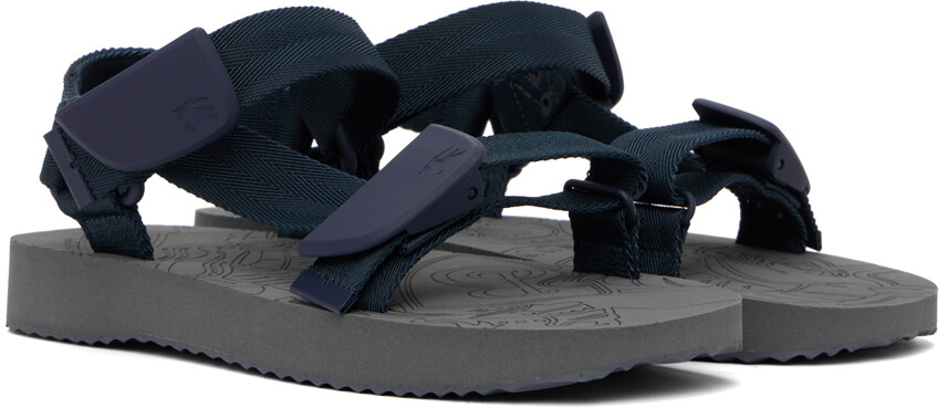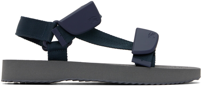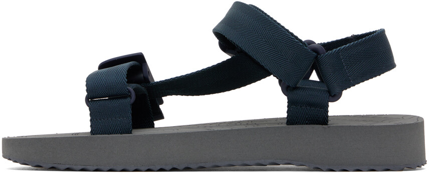 Сандалии Navy Trek. Плоские сандалии с лямками темно-синего цвета. · Открытый носок. · Ремешки с застежкой-храповиком и гравировкой логотипа на мыске. · Ремешок на пятке. · Подошва из термополиуретана. Цвет поставщика: Lake Верх: текстиль. Подошва: термопластичный полиуретан. Сделано в Италии.