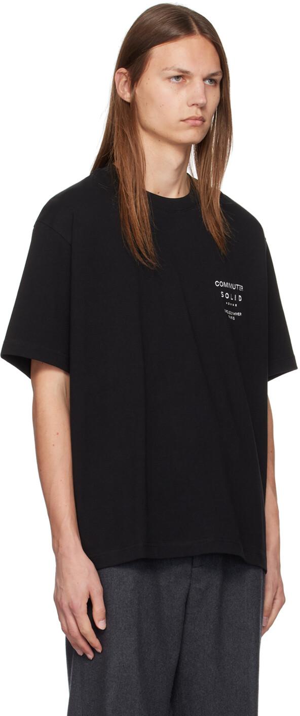 Черная футболка «Commuter». Футболка из хлопкового джерси. · Круглый вырез горловины в рубчик. · Вышитый логотип на груди. · Разрезы по боковым швам. · Спущенные плечи. Цвет поставщика: черный. Основная часть: 100% хлопок. Отделка: 97% полиэстер, 3% полиуретан. Сделано в Южной Корее.