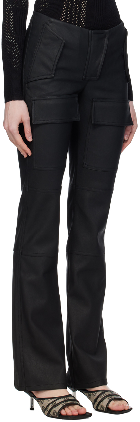 Черные байкерские брюки из искусственной кожи. Брюки из искусственной кожи с зернистой отделкой.· Низкая посадка.· Четыре кармана.· Застежка-молния.· Карманы с клапанами спереди.· Подкладка из искусственной замши. Цвет поставщика: выцветший черный. 57% полиуретана, 43% полиэстера. Сделано в Польше.
