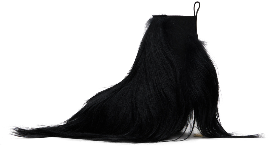 Черные ботинки челси Porterville Minimal Grill Beatle 65. Ботинки челси из козьего меха до щиколотки черного цвета. Квадратный носок. Петля на воротнике пятки. Эластичные вставки по бокам. Подкладка из полированной телячьей кожи. Прозрачный блочный каблук из плексигласа с вставкой из термополиуретана. Закрытая платформа между подошвой. Кожаная подошва с протекторным вставкой из термополиуретана. Платформа: H3.5"· Каблук: H5" Цвет поставщика: черный/прозрачный Верх: козья кожа, телячья кожа. Подошва: кожа, термопластичный полиуретан. Сделано в Италии.