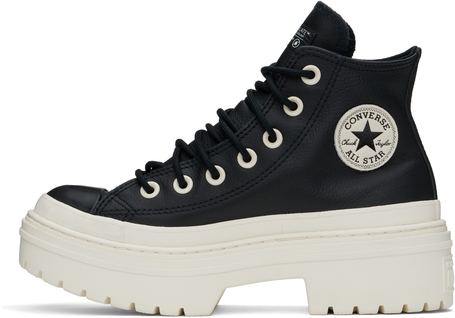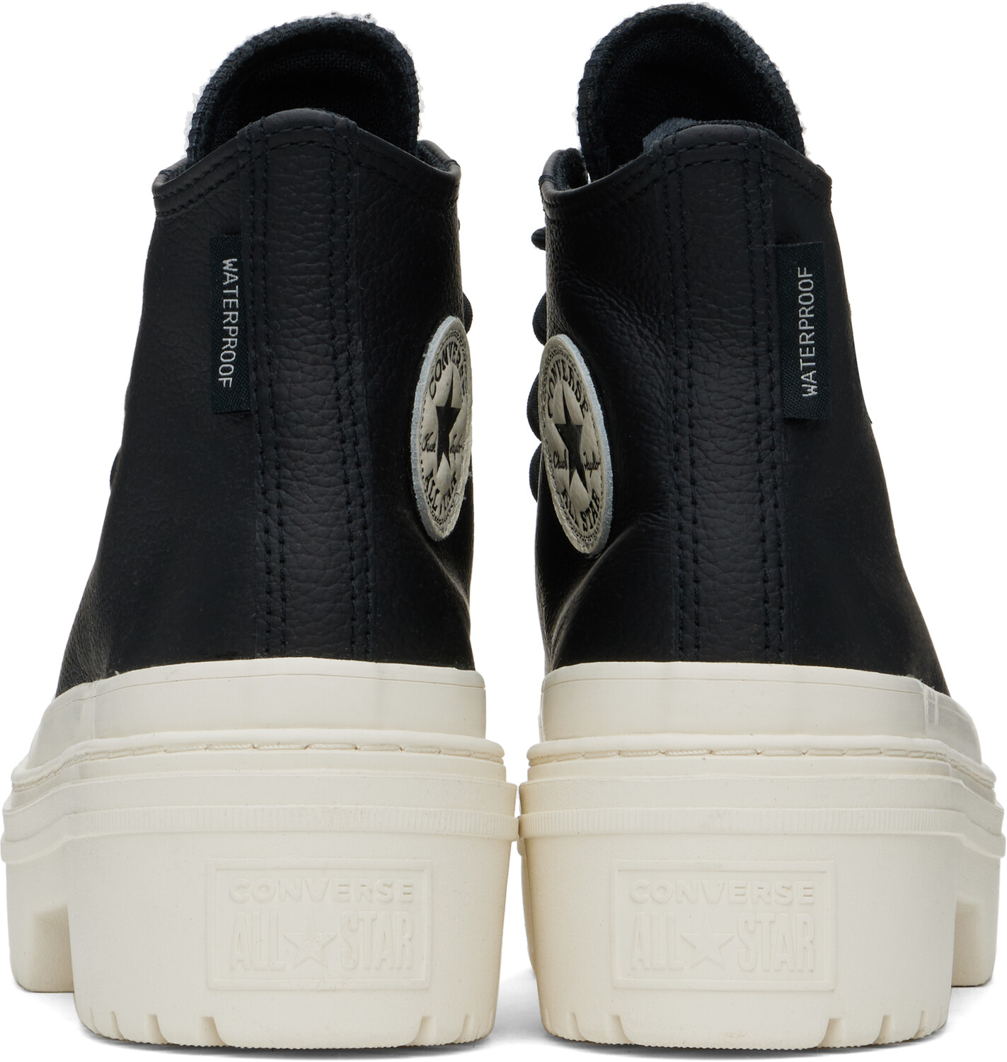 Черные водонепроницаемые кроссовки Chuck Taylor All Star Platform. Высокие кроссовки из зернистой кожи черного цвета. Утеплитель Thinsulate, водонепроницаемые. Резиновый носок. Шнуровка. Нашивка с логотипом на внутренней стороне. Мягкая стелька OrthoLite. Сетчатая подкладка. Прорезиненная отделка по ранту. Тисненый логотип на пятке. Резиновая подошва на платформе с протектором. Платформа: H1.5"· Каблук: H2". Цвет поставщика: черный/черный/Egret. Верх: кожа. Подошва: резина. Сделано во Вьетнаме.