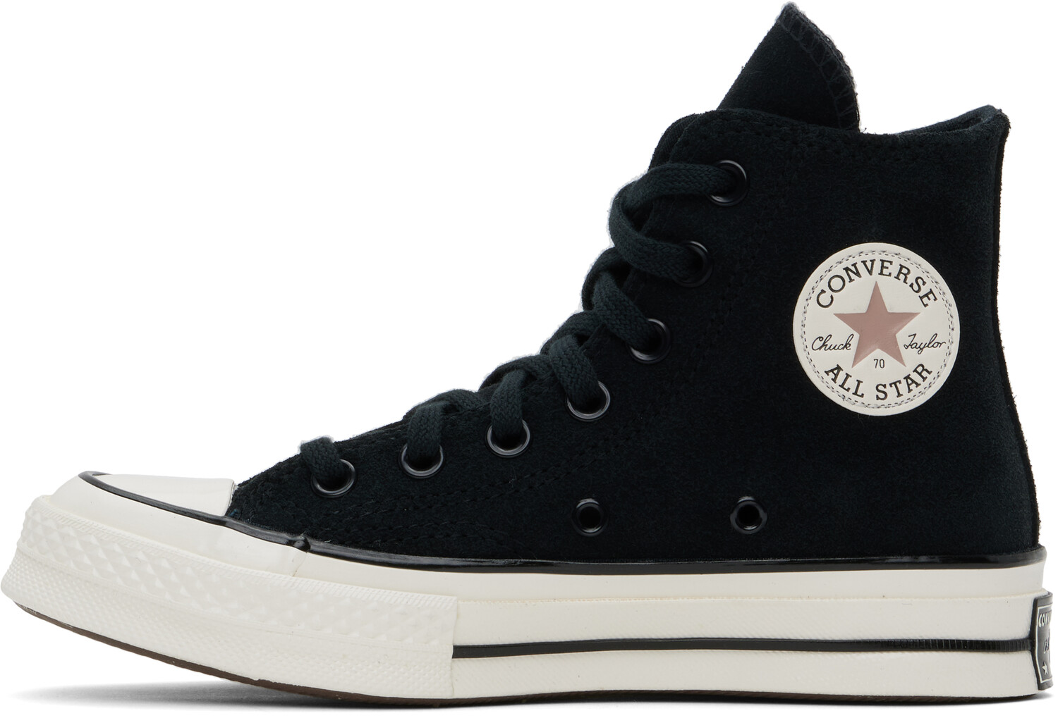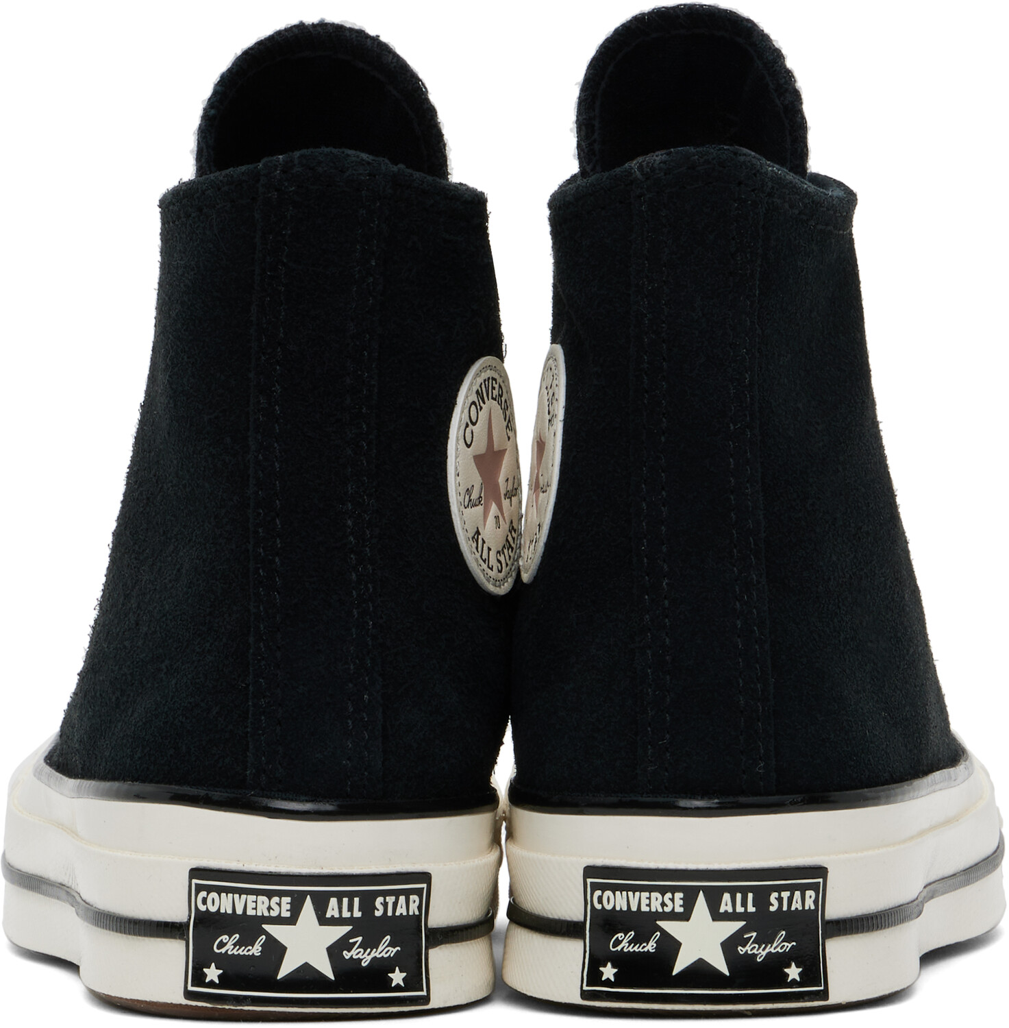 Черные замшевые кроссовки Chuck 70 Heritage Color. Высокие замшевые кроссовки черного цвета. Резиновый носок. Шнуровка. Нашивка с логотипом и люверсы на внутренней стороне. Мягкая стелька OrthoLite. Подкладка из парусины. Прорезиненная нашивка с логотипом на пятке. Подошва из резины с протектором. Цвет поставщика: черный/Bite the dust/Egret. Верх: кожа, текстиль. Подошва: резина. Сделано во Вьетнаме.