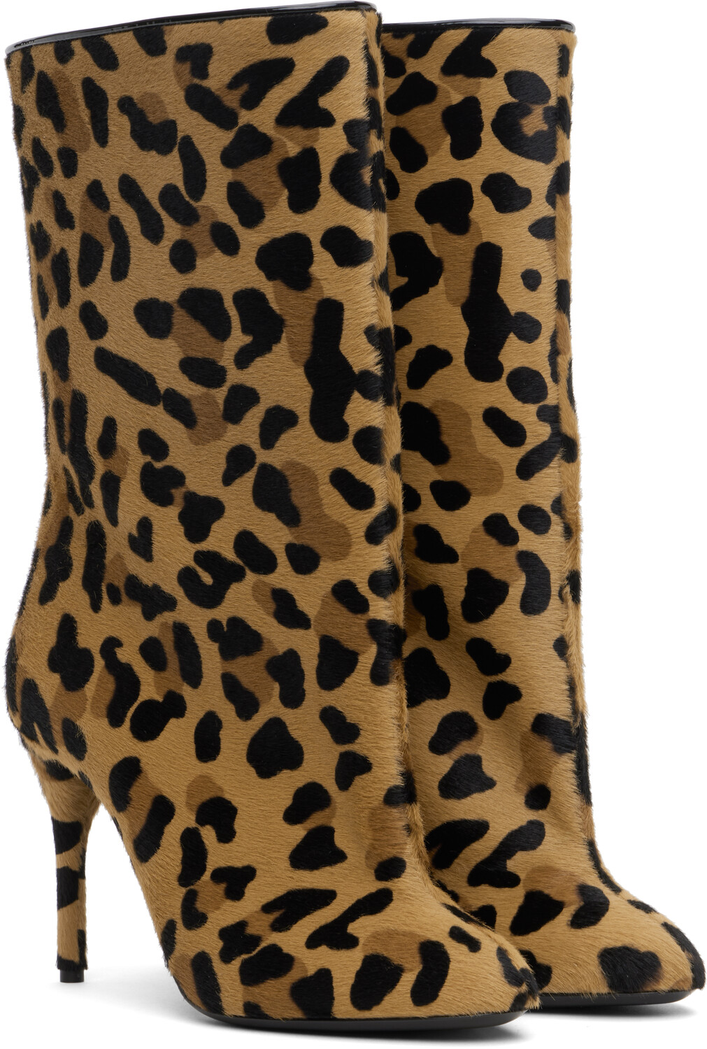 Ботинки Tan & Black Low 90. Ботинки до середины голени из телячьей шерсти коричневого и черного цвета.· Леопардовый узор по всей длине· Острый носок· Подкладка из полированной овчины· Обтянутый каблук-шпилька с резиновым напылением· Подошва из телячьей кожи с резиновым напылением· Каблук: H3.5" Цвет поставщика: Brun sepia Верх: телячья кожа. Подошва: телячья кожа, резина. Сделано в Италии.