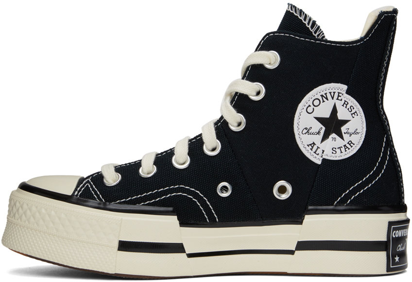 Черные кроссовки Chuck 70 Plus. Высокие парусиновые кроссовки черного цвета.· Резиновый носок.· Шнуровка.· Нашивка с логотипом и люверсы на внутренней стороне.· Прорезиненная нашивка с логотипом на заднике.· Мягкая стелька OrthoLite.· Подкладка из парусины.· Прорезиненная подошва с протектором.· Контрастная строчка белого цвета.· Платформа: H1.5". Цвет поставщика: черный/Egret/черный. Верх: текстиль. Подошва: резина. Сделано во Вьетнаме.
