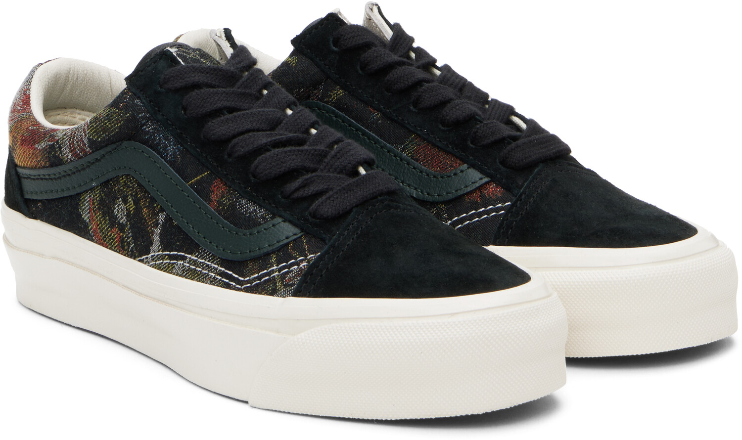 Черные кроссовки Premium Old Skool Jacquard. Низкие кроссовки из твила и замши черного цвета.· Жаккардовый цветочный узор по всей длине· Шнуровка· Мягкий язычок и воротник· Зернистая кожа Sidestripe по бокам· Мягкая стелька из пеноматериала Sola ADC· Подкладка из полированной кожи и парусины· Прорезиненная нашивка с логотипом на пятке· Резиновая подошва с протекторомЦвет поставщика: цветочный черный Верх: текстиль, кожа. Подошва: резина. Сделано в Филиппинах.