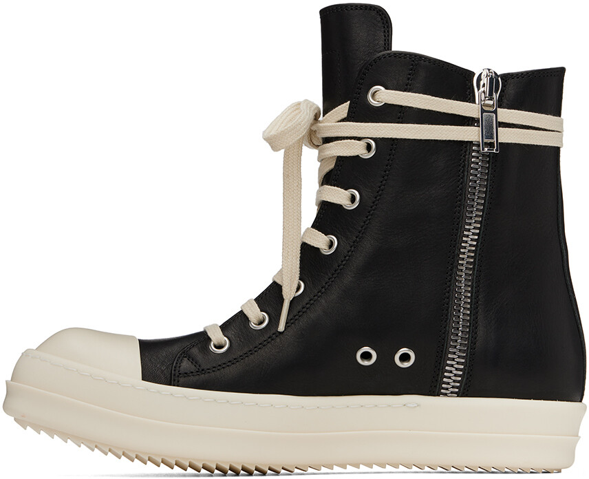 Черные кроссовки Porterville. Высокие кроссовки из вощеной зернистой телячьей кожи растительного дубления черного цвета.· Закрытый носок· Шнуровка· Застежка-молния с внутренней стороны· Металлические люверсы· Подкладка из полированной телячьей кожи· Прорезиненная термопластичная резиновая подошваЦвет поставщика: черный/молочный/молочный Верх: телячья кожа. Подошва: термопластичная резина. Сделано в Италии.
