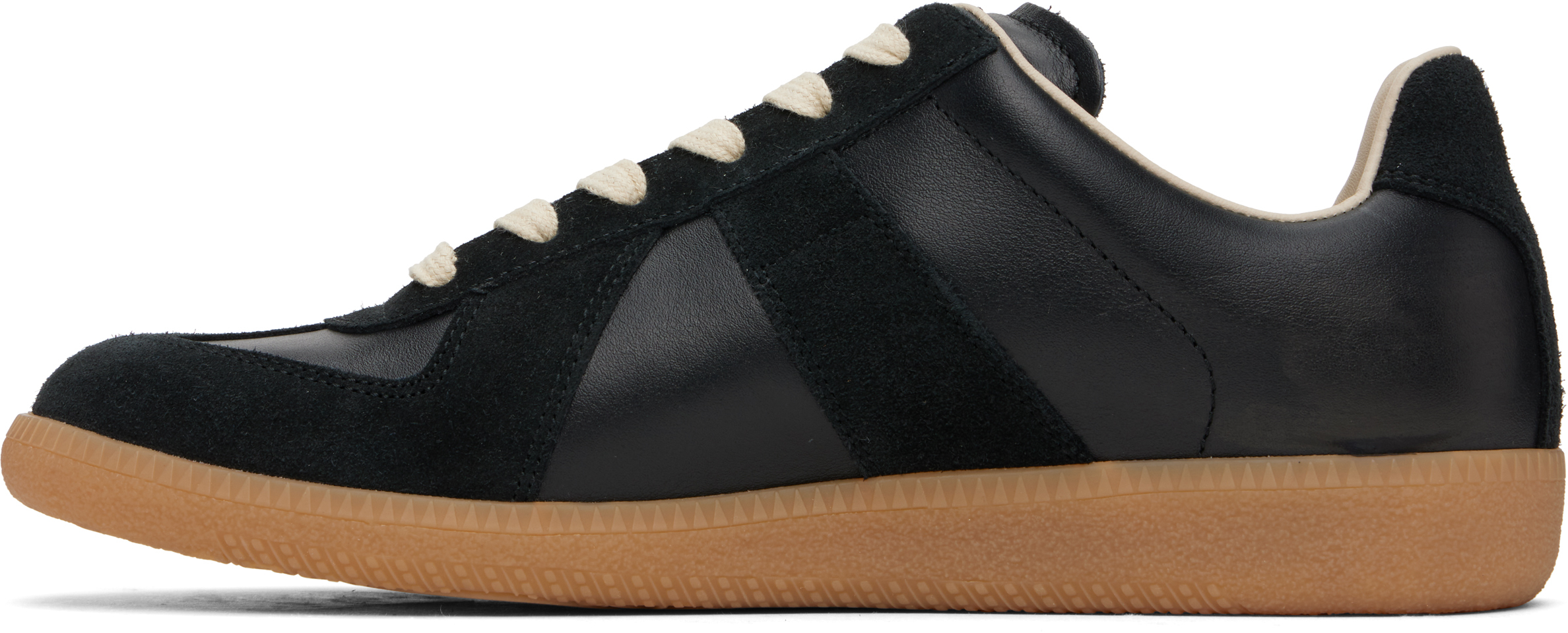 Черные кроссовки Replica. Низкие кроссовки из зернистой телячьей кожи наппа и телячьей замши черного цвета.· Шнуровка.· Скрытые эластичные вставки на мыске.· Нашивка с логотипом на мягком язычке.· Мягкий воротник.· Фирменная белая строчка на пятке.· Подкладка из полированной телячьей кожи и сукна.· Текстурированная резиновая межподошва.· Резиновая подошва с протектором. Цвет поставщика: черный/черный. Верх: телячья кожа. Подошва: резина. Сделано в Италии.