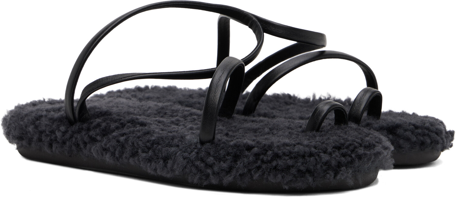 Черные сандалии Eleftheria. Сандалии из кожи наппа ручной работы черного цвета.· Открытый носок· Фиксированный ремешок на носке· Фиксированный ремешок на щиколотке· Стелька с подкладкой из овчины· Резиновая подошва с логотипомЦвет поставщика: черный/черная овчина Верх: кожа, овчина. Подошва: резина. Сделано в Греции.