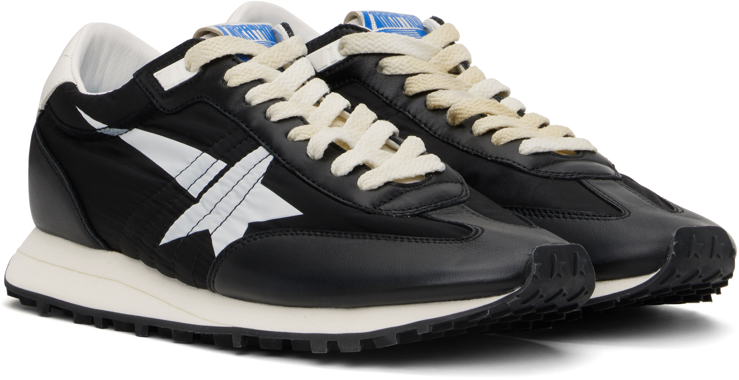 Кроссовки Marathon Black & White. Кроссовки ручной работы из тафты и зернистой овчины с низким верхом, выполненные в черном и белом цвете.· Шнуровка· Нашивка с логотипом на мягком язычке· Мягкий воротник· Фирменная звезда, напечатанная снаружи· Металлические люверсы с внутренней стороны· Логотип, напечатанный на пятке· Подкладка из зернистой овчины и замши· Промежуточная подошва из вспененной резины· Резиновая подошва с протекторомЦвет поставщика: черный/белый/черный Верх: текстиль, овчина. Подошва: резина. Сделано в Италии.