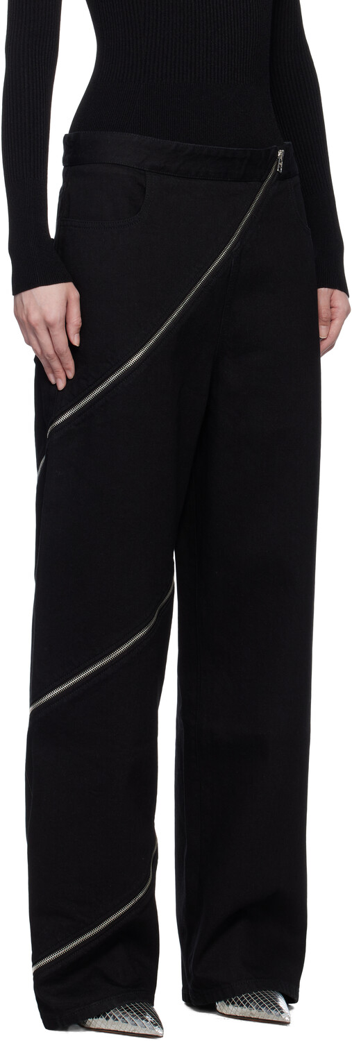 Черные спиральные джинсы. Джинсы из эластичного денима. Двусторонняя застежка-молния по всей длине доходит до манжеты.· Прямой крой.· Модель с четырьмя карманами. Цвет поставщика: Noir. Основная часть: 99% хлопок, 1% полиуретан. Подкладка: 65% полиэстер, 35% хлопок. Сделано в Италии.