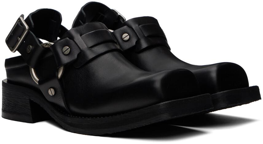 Черные кожаные туфли с пряжкой. Туфли из полированной телячьей кожи черного цвета.· Квадратный носок.· Накладка в стиле ремешков на щиколотке.· Тисненый логотип на ремешке с пряжкой.· Подкладка из полированной телячьей кожи.· Наборный резиновый каблук.· Прорезиненная подошва.· Гравировка логотипа с гравировкой под старину в серебристом оттенке.· Каблук: высота 1,5 дюйма. Цвет поставщика: черный. Верх: телячья кожа. Подошва: резина. Сделано в Италии.