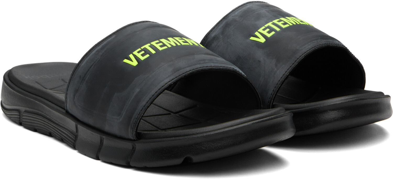 Черные шлепанцы для бассейна с логотипом Reebok Edition VETEMENTS