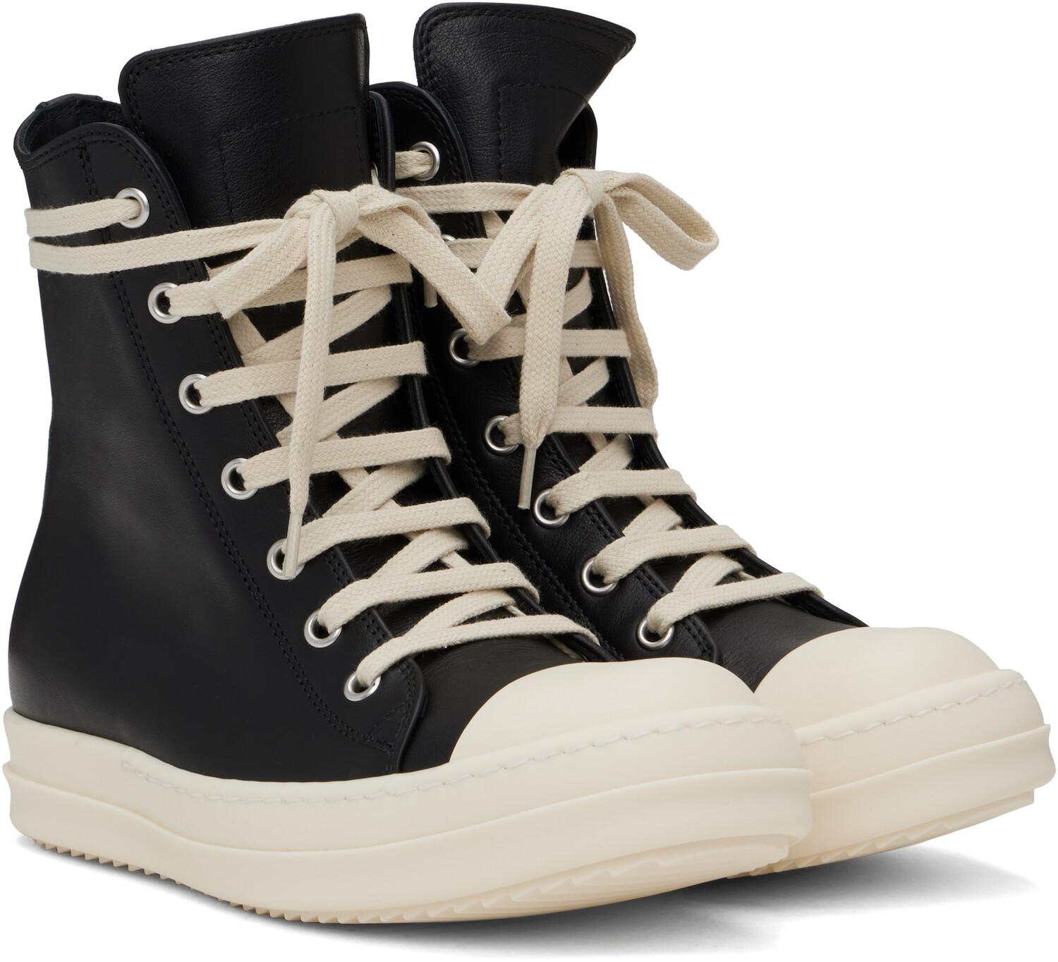 Черные кроссовки Hollywood из телячьей кожи Rick Owens, Black/Milk/Milk