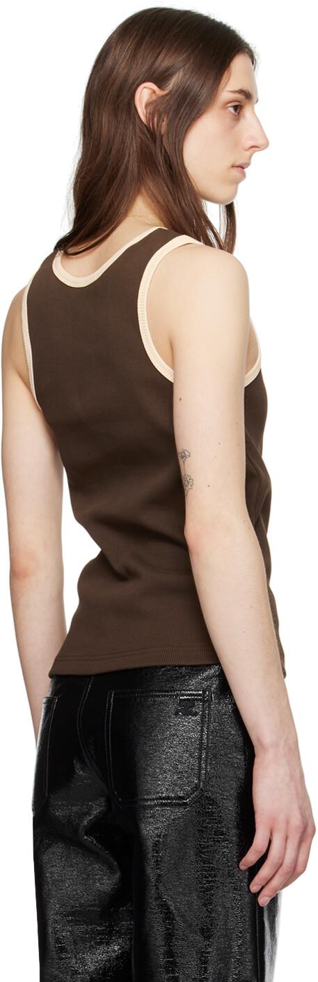 Коричневый топ с вышивкой. Топ из органического хлопка в рубчик. · Круглый вырез горловины. · Вышитый логотип на груди. Цвет поставщика: Коричневый с верблюжьим 100% органический хлопок. Сделано в Португалии.