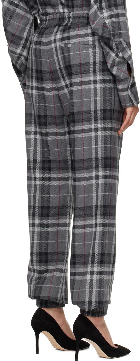 Серые длинные брюки. Широкие брюки из хлопчатобумажной фланели. Узор в клетку по всему изделию. · Завязка с логотипом на эластичном поясе. · Нашивка с логотипом на поясе спереди. · Четыре кармана. · Ложный гульфик. · Эластичные манжеты. Цвет поставщика: серый. Основная часть: 80% хлопок, 20% полиэстер. Подкладка: 100% хлопок. Сделано в Италии.