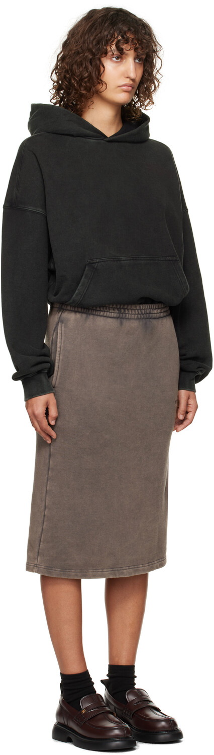 Черно-коричневое многослойное платье-миди с капюшоном. Платье-миди из французского трикотажа.· Многослойная конструкция · Карман-кенгуру · Эластичный пояс · Прорезные карманы · Вышитый логотип спереди · Заниженная линия плеч · Центральная шлица сзади на подолеЦвет поставщика: черный Основная часть: 100% хлопок. Отделка 1: 100% хлопок. Отделка 2: 95% хлопок, 5% полиуретан. Сделано в Южной Корее.