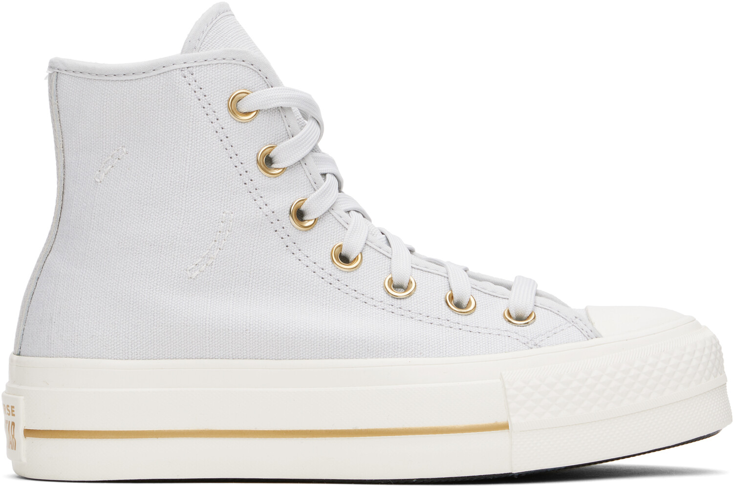 Серые высокие кеды Chuck Taylor All Star Lift Platform Tailored Lines. Высокие парусиновые кеды серого цвета. Резиновый носок. Застежка на шнуровке. Нашивка с логотипом и люверсы с внутренней стороны. Сетчатая подкладка. Амортизирующая стелька OrthoLite. Нашивка с логотипом на пятке. Резиновая подошва-платформа с протектором. Платформа: H1.5". Цвет поставщика: Barely Grey/Egret/Gold. Верх: текстиль. Подошва: резина. Сделано во Вьетнаме.