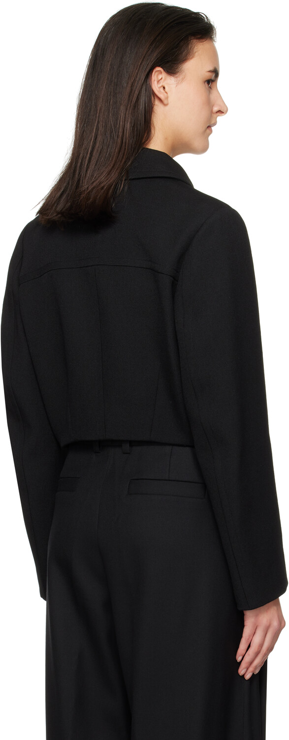 Черная шерстяная короткая куртка. Куртка из шерстяной саржи.· Отложной воротник· Застежка на пуговицы· Прорезные карманы· Фурнитура с логотипом на заднем воротнике· Полностью атласная подкладкаЦвет поставщика: черныйОснова: 100% шерсть. Подкладка: 50% вискоза, 50% полиэстер. Сделано в Южной Корее.