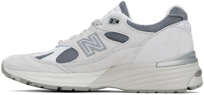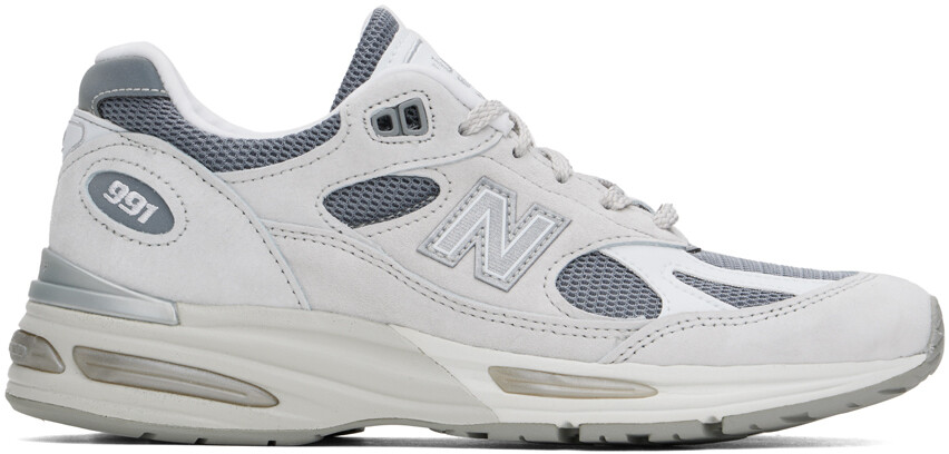 Серые Кроссовки MADE in UK 991v2. Низкие кроссовки из сетки и свиной замши серого цвета. Светоотражающая отделка по всей поверхности. Застежка на шнуровке. Вышитый логотип на мягком язычке и пятке. Мягкий воротник. Аппликация логотипа по бокам. Тисненый логотип на заднике. Подкладка из джерси. Вставки ENCAP и ABZORB SBS на вспененной резиновой подошве FuelCell. Резиновая подошва с протектором. Цвет поставщика: облако Nimbus/холодный серый. Верх: свиная кожа, текстиль. Подошва: резина. Сделано в Великобритании.