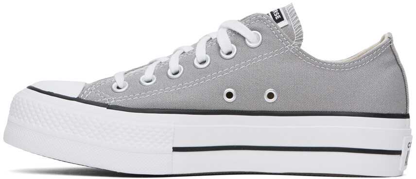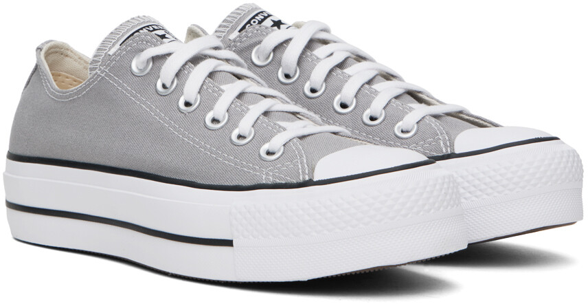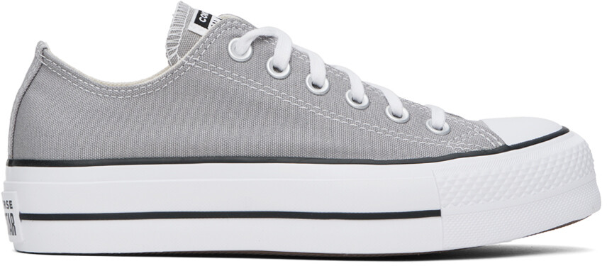 Серые кроссовки Chuck Taylor All Star Low Top. Низкие парусиновые кроссовки серого цвета.· Резиновый носок.· Шнуровка.· Логотип на язычке.· Металлические люверсы с внутренней стороны.· Прорезиненная нашивка с логотипом на пятке.· Стелька OrthoLite.· Резиновая подошва-платформа с протектором.· Платформа: H1.25". Цвет поставщика: Полностью нейтральный/белый. Верх: текстиль. Подошва: резина. Сделано во Вьетнаме.