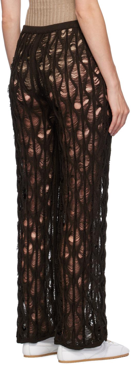 Коричневые брюки для дома Cencioni. Штаны для дома из хлопка с ажурной вязкой ручной работы. · Лестницы по всему изделию. · Логотип на эластичном поясе из рубчика. Цвет поставщика: темно-коричневый 100% хлопок. Сделано в Индонезии.