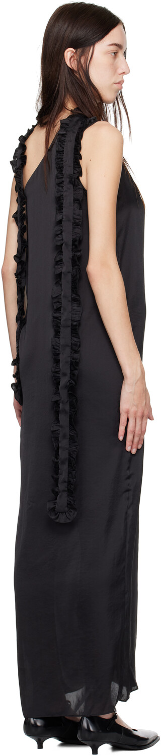Эксклюзивное черное платье SSENSE Aretha Maxi. Платье макси из эластичного полиэстерового атласа. Оборки по всему изделию.· Одно плечо.· Разрез спереди по подолу.· Потайная застежка-молния на боковом шве.· Интегрированная отделка в виде шарфа на плече.· Без подкладки. Доступно исключительно на SSENSE. Цвет поставщика: черный. 97% полиэстер, 3% эластан. Сделано в Колумбии.