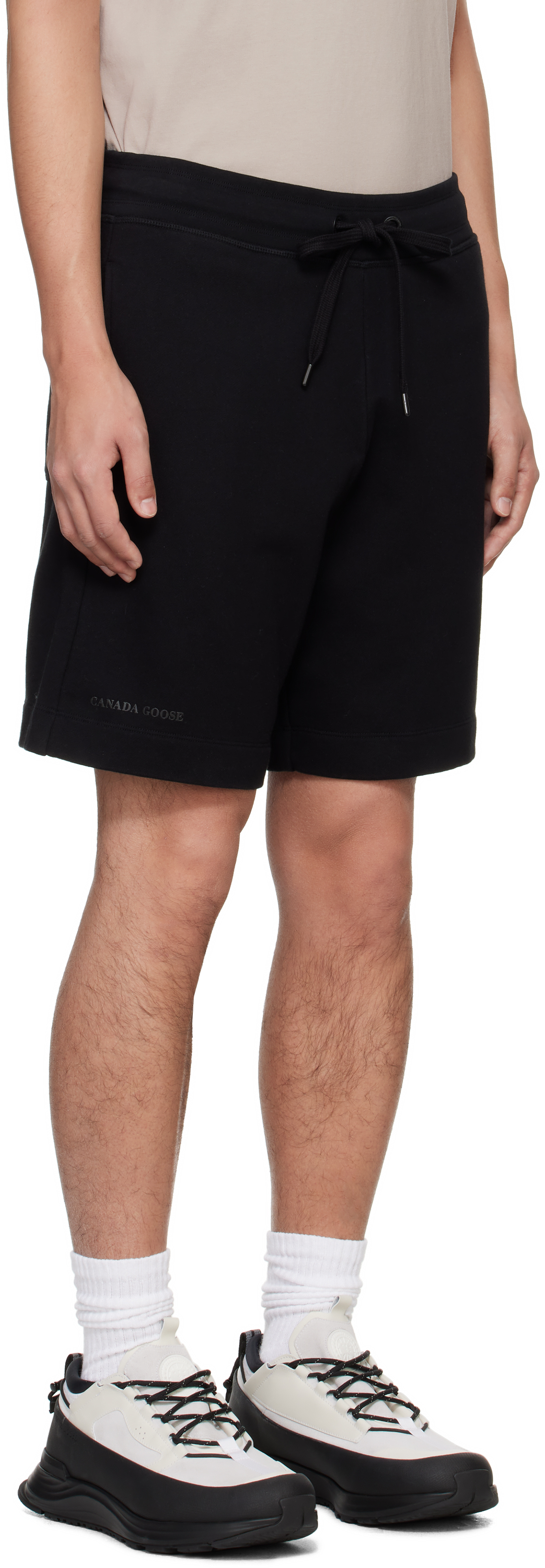 Черные шорты Huron. Шорты из французского трикотажа. · Затягивающийся шнурок на эластичном поясе. · Модель с тремя карманами. · Логотип, пришитый на штанине. · Черная фурнитура с гравировкой логотипа. Цвет поставщика: черный, 100% хлопок. Сделано в Португалии.