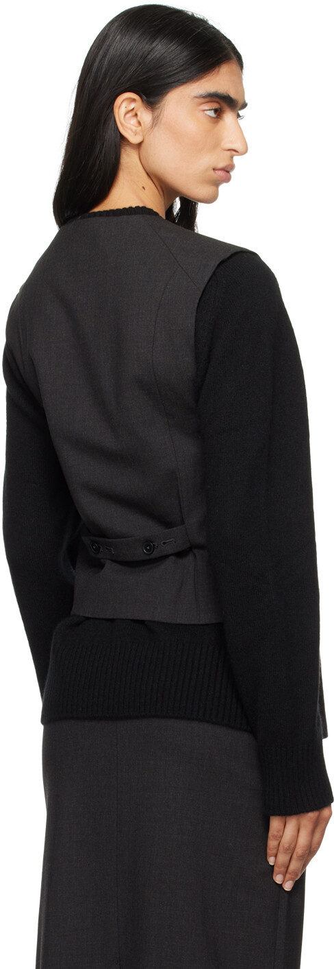 Серый жилет Teora. Жилет из эластичной саржи из натуральной шерсти, сертифицированный OEKO-TEX.· Y-образный вырез· Застежка на пуговицы· Прорезные карманы· Регулируемый ремешок на пуговицы сзади· Частичная подкладка из гладкого тканого полотнаЦвет поставщика: антрацитовыйОснова: 95% натуральной шерсти, 5% эластана. Подкладка: 100% вискоза. Сделано в Румынии.