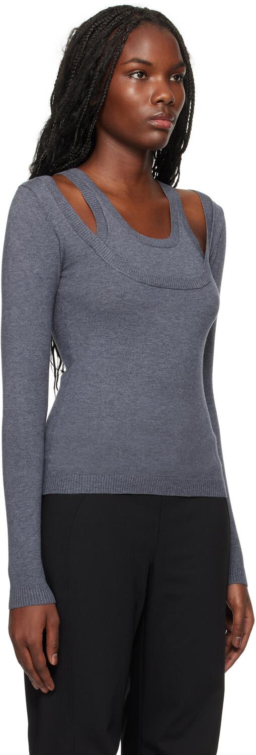 Серый свитер Etoile. Трикотажный свитер из смеси вискозы. · Панельная конструкция. · Трикотажный вырез, подол и манжеты из рубчика. · Вырезы спереди. Цвет поставщика: темно-серый 72% вискозы, 28% полиэстера. Сделано в Эстонии.