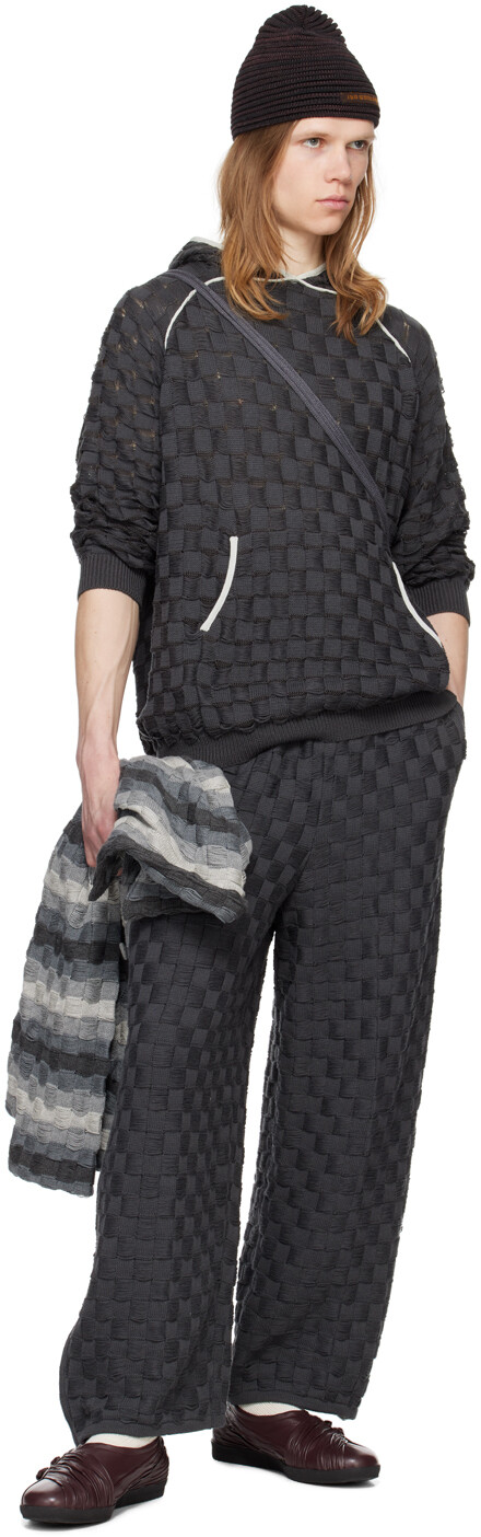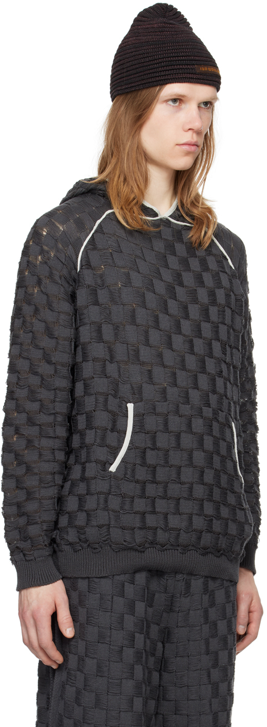 Эксклюзивная серая толстовка с капюшоном Chess от SSENSE. Хлопковая толстовка с капюшоном, плетеная в корзинку. Лестничный узор и узор в клетку по всей длине. Кант спереди и сзади. Карман-кенгуру. Трикотажные манжеты и низ в рубчик. Рукава реглан. Логотип на подоле сзади. Доступно эксклюзивно в SSENSE. Цвет поставщика: сланец, 100% хлопок. Сделано в Индонезии.