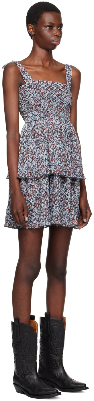 Синее мини-платье с цветочным принтом GANNI
