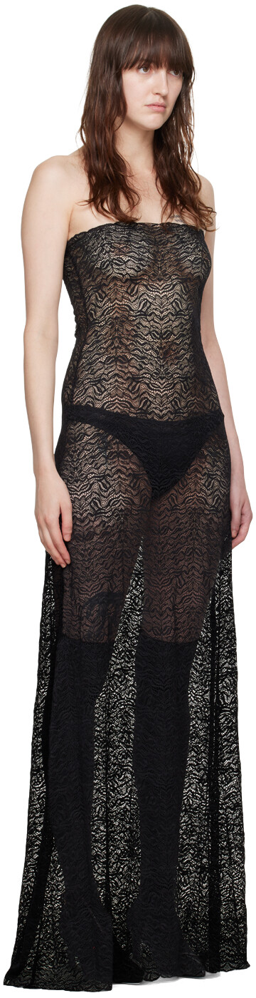 Эксклюзивное черное анисовое макси-платье от SSENSE. Платье-трапеция из прозрачного эластичного кружева с добавлением нейлона. Цветочный узор по всему изделию. Конструкция без бретелек. Фестончатый край на прямой горловине и подоле. Доступно эксклюзивно в SSENSE. Цвет поставщика: черный 59% нейлон, 32% вискоза, 9% спандекс. Сделано в Португалии.