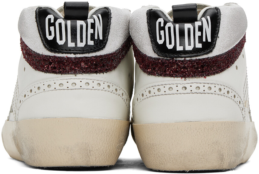 Эксклюзивные белые кроссовки Mid Star от SSENSE. Кроссовки из полированной кожи и замши ручной работы белого цвета. · Пятна и перфорированные детали по всей длине. · Застежка на шнуровке с логотипом. · Нашивка с логотипом на язычке. · Мягкий воротник. · Блестящие детали по бокам и на пятке. · Аппликация в виде звезды на внешней стороне. · Золотистый логотип на внешней стороне. · Петля на воротнике пятки. · Логотип, напечатанный на пятке. · Подкладка из замши и махровой ткани. · Резиновая подошва с протектором. Доступно эксклюзивно в SSENSE. Цвет поставщика: красный/золотой. Верх: кожа. Подошва: резина. Сделано в Италии.