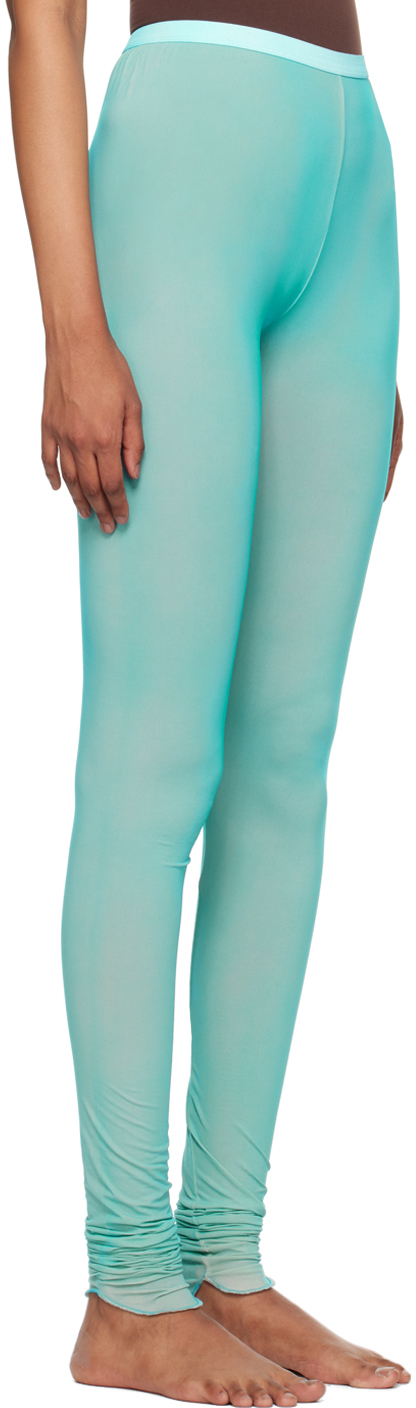Синие выцветшие леггинсы. Полупрозрачные эластичные леггинсы из нейлонового джерси. Выцветание по всей длине. · Эластичный пояс. · Напечатанный логотип на штанине. Цвет поставщика: ярко-синий спрей 86% полиамида, 14% эластана. Сделано в Италии.