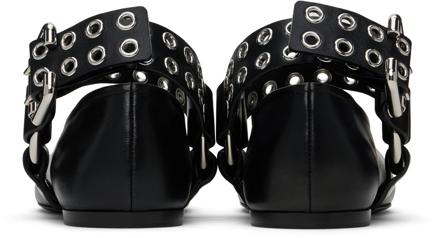 Черные балетки Biker Ballerina. Балетки из полированной телячьей кожи черного цвета.· Квадратный носок.· Люверсы и уплотнительные кольца на ремешке с пряжкой на щиколотке.· Кожаная подошва с резиновым напылением. Цвет поставщика: черный. Верх: телячья кожа. Подошва: кожа, резина. Сделано в Италии.
