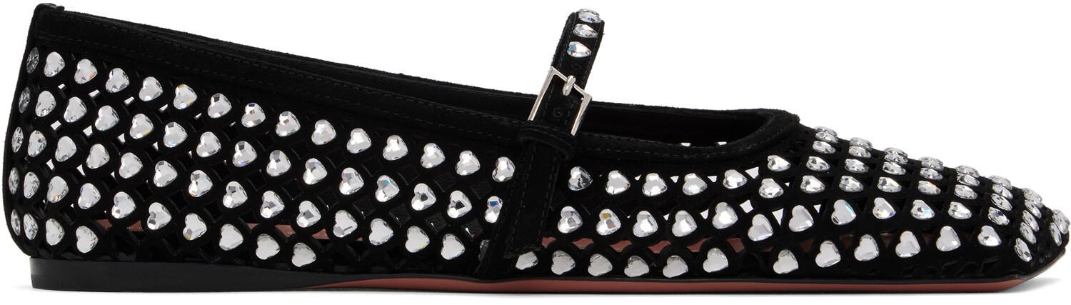 Черные балетки Ane Crystal Heart. Балетки из замши ягненка черного цвета. · Перфорация и отделка кристаллами по всей поверхности. · Асимметричный квадратный носок. · Ремешок с пряжкой на мыске. · Мягкая стелька из козьей кожи с тиснением логотипа. · Кожаная подошва с резиновыми вставками. Цвет поставщика: черный. Верх: овчина. Подошва: кожа, резина. Сделано в Италии.