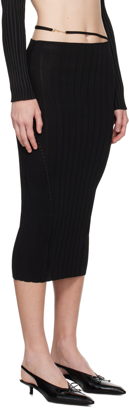 Черная юбка-миди Les Classiques 'La jupe Pralù'. Юбка из вискозы с ажурным ребром. · Высокая посадка · Фурнитура с логотипом и регулируемым ремешком на талии · Фестончатая отделка по подолу · Без подкладки · Золотистая фурнитура Часть коллекции Les Classiques. Цвет поставщика: черный 94% вискоза, 6% полиэстер. Сделано в Румынии.