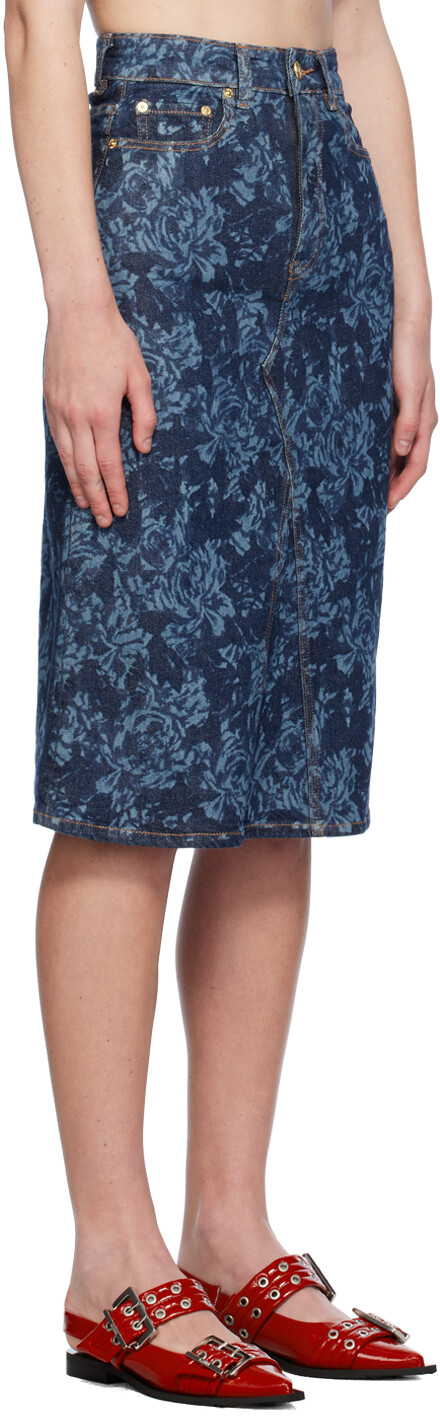 Юбка миди Blue Lazer Denim. Юбка из эластичного органического хлопкового денима. Цветочный узор, нанесенный лазером по всей длине. · Шлевки для ремня · Модель с пятью карманами · Застежка-молния · Нашивка с логотипом на заднем кармане · Золотистая фурнитура с гравировкой логотипа · Контрастная строчка цвета загара Цвет поставщика: средне-голубой камень 99% органический хлопок, 1% эластан. Сделано в Турции.