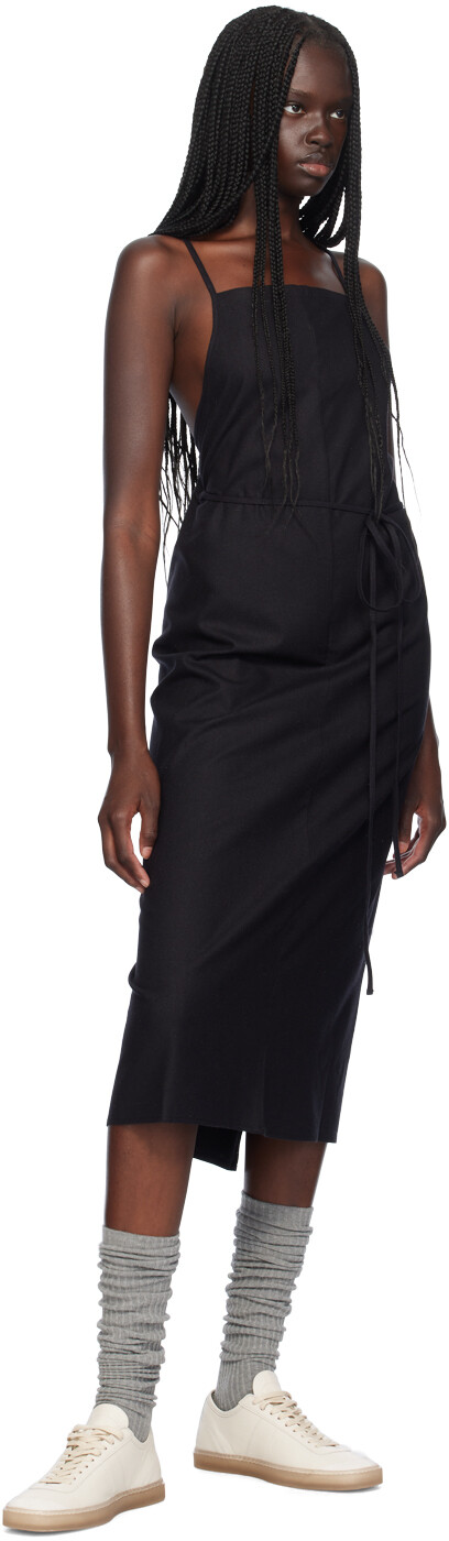 Черное платье-фартук Yumi Midi. Платье из дикого шелка с сертификатом OEKO-TEX. · Конструкция с запахом · Квадратный вырез · Завязывающийся ремешок на талии · Фиксированные тонкие бретели · Открытая спина. Цвет поставщика: черный 100% дикий шелк. Сделано в Турции.