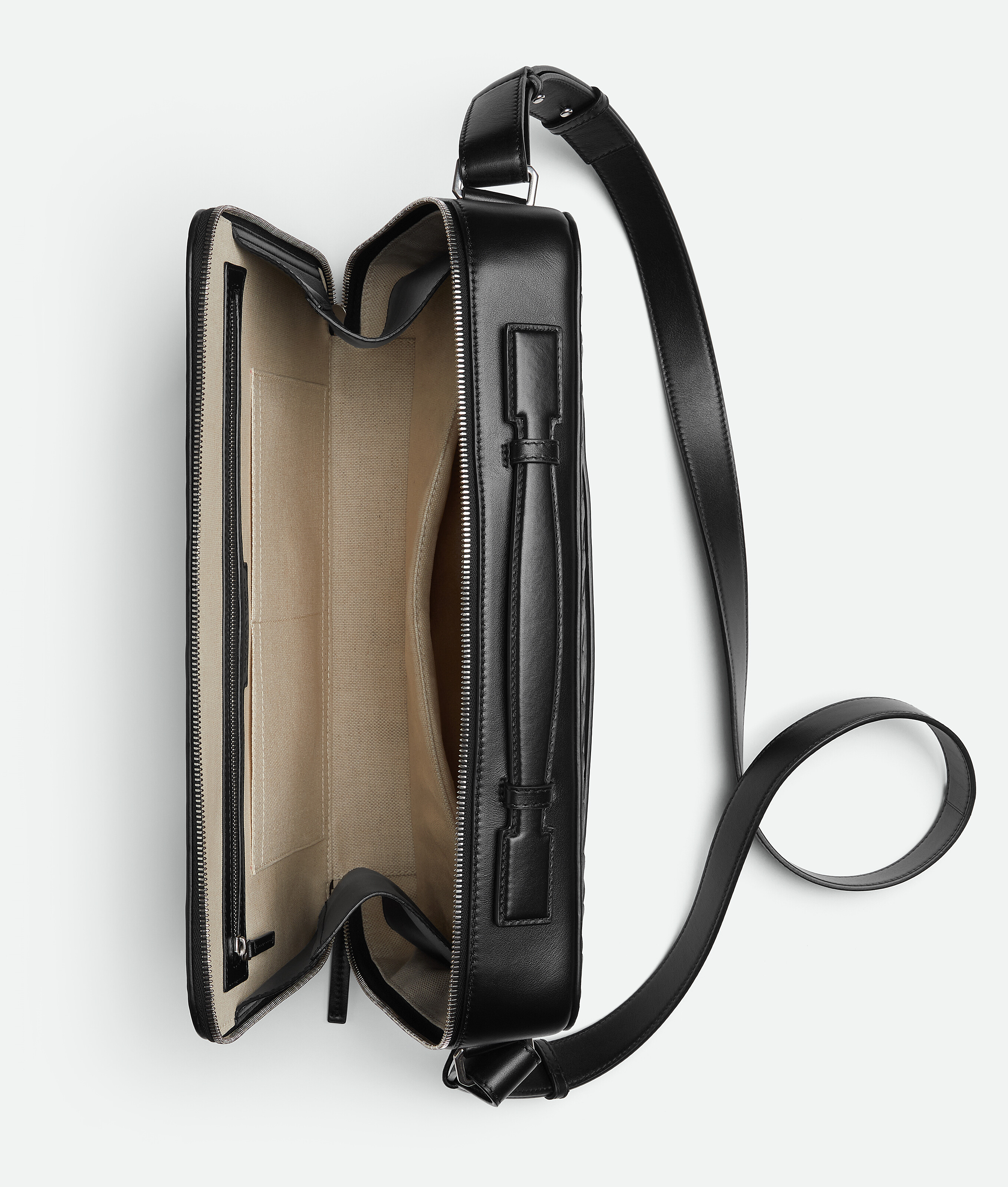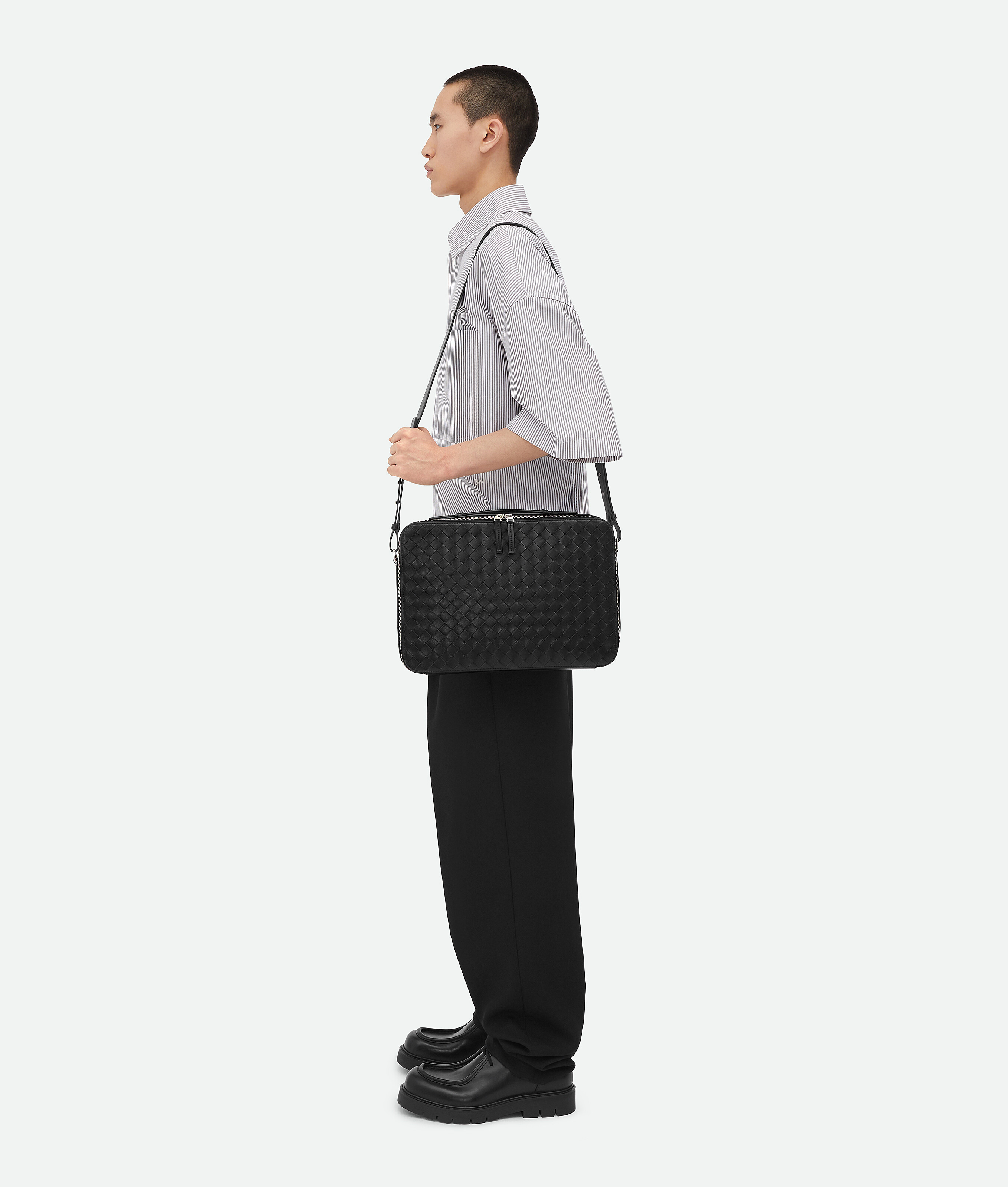 • Тонкий портфель Intrecciato с регулируемым и съемным ремнем и выдвижной ручкой