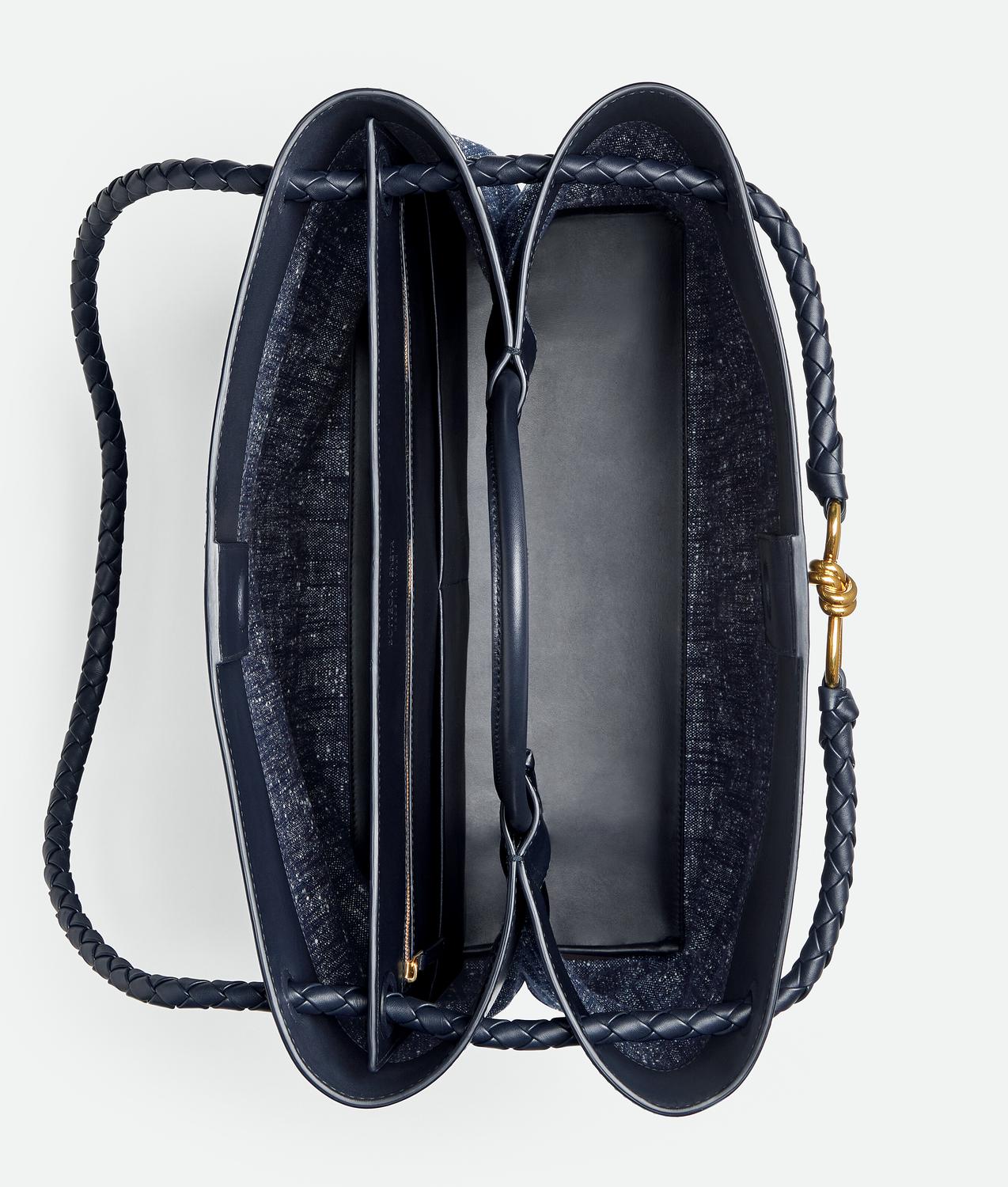 • Большая сумка из джинсовой ткани букле с верхней ручкой и выдвижным ремнем через плечо