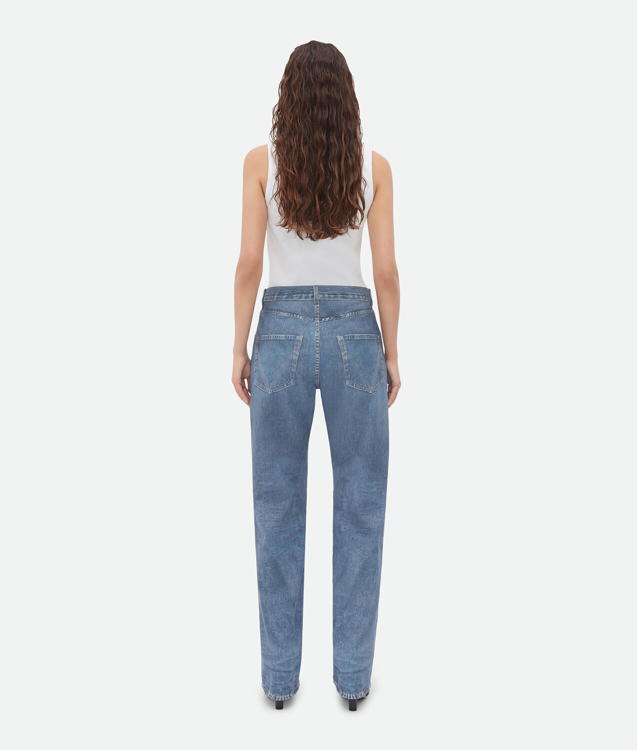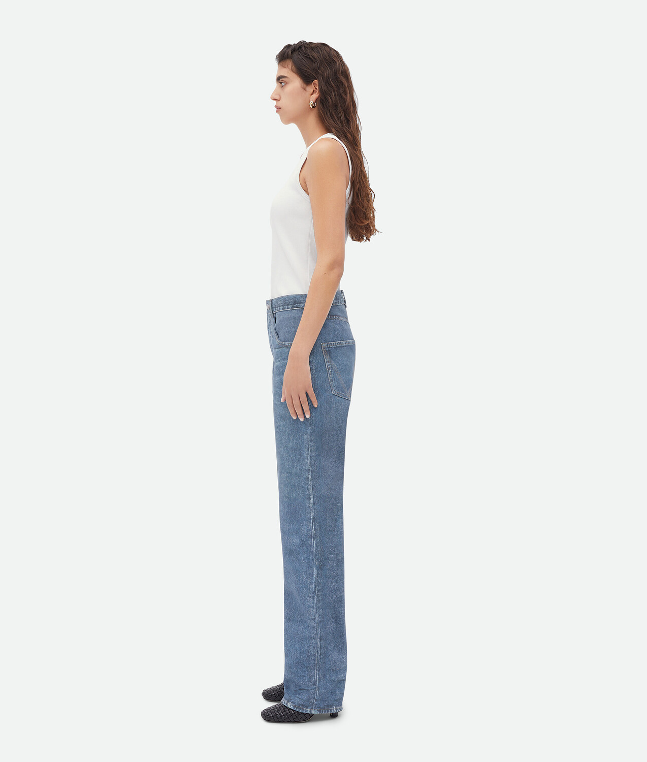 Кожаные джинсы бойфренд с принтом Bottega Veneta 630 580₽