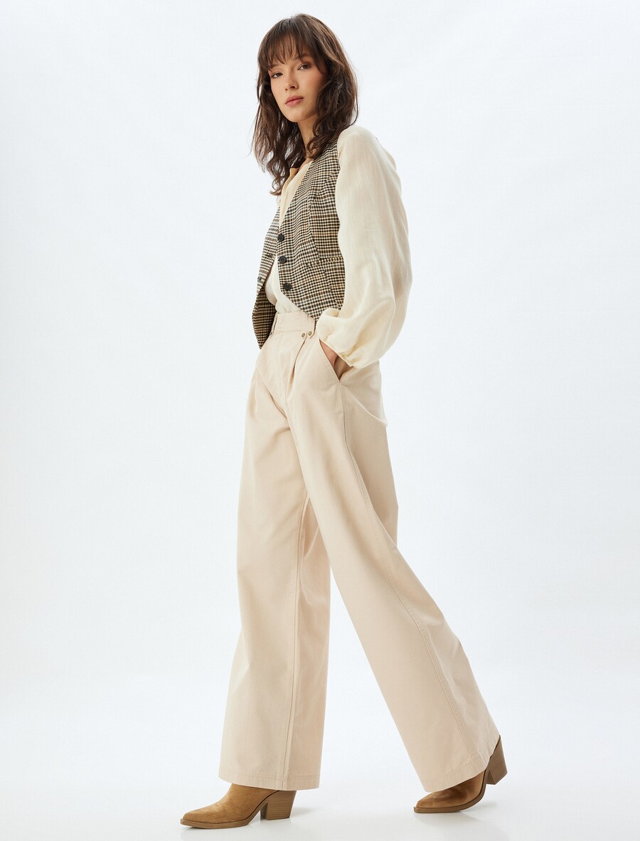Брюки со складками спереди Koton Loose fit Pleat-Front Pants, бежевый 7 481₽