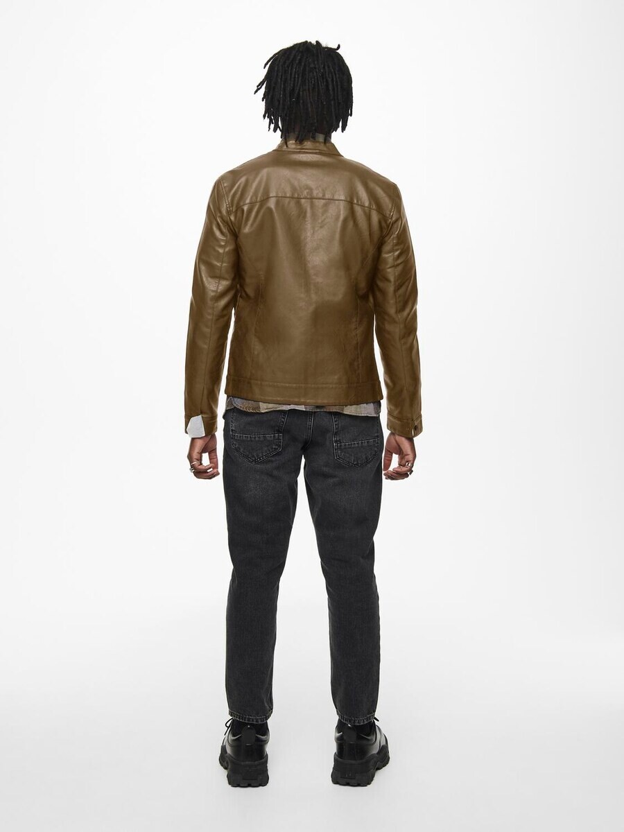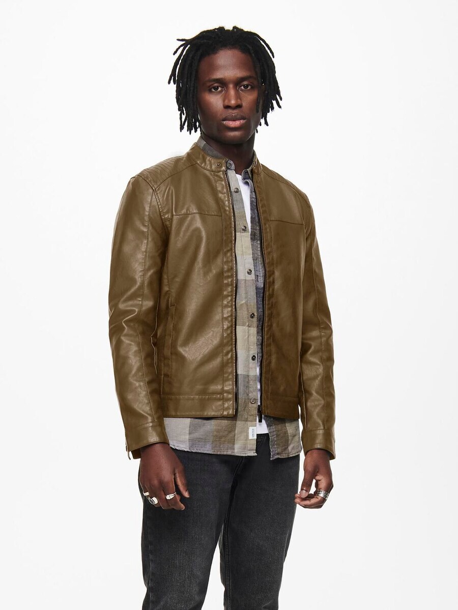 Кожаная куртка Only & Sons Regular fit Between-Season Jacket Onsmike, коричневый 6 735₽
