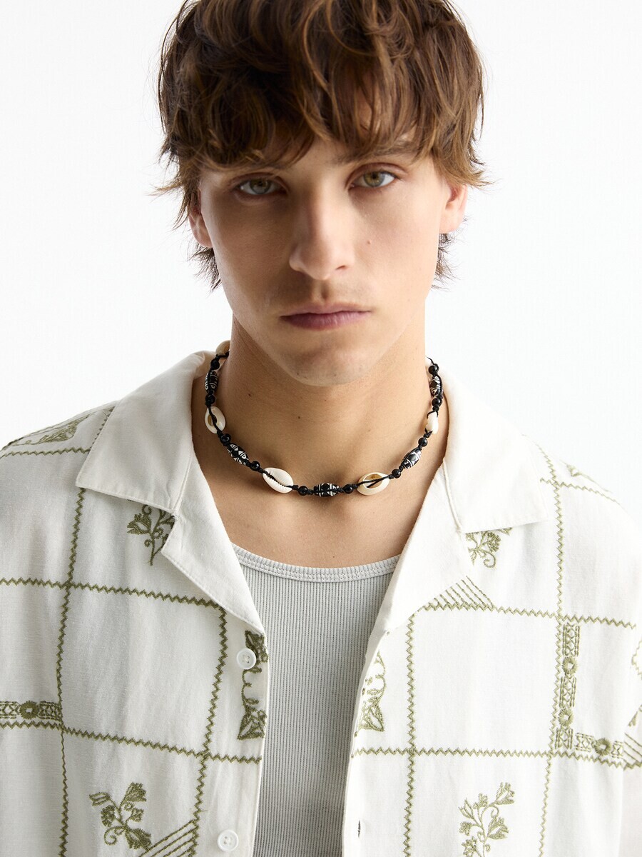 Клетчатая рубашка Pull&Bear Comfort fit Button Up Shirt, белый